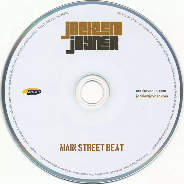 Jackiem Joyner: Main Street Beat versie op CD in standaard editie. Deze specifieke uitgave werd uitgebracht in Wereldwijd bij uitgeverij Artistry Music op 7. juli 2017. Album valt binnen het genre Jazz en Smooth Jazz.