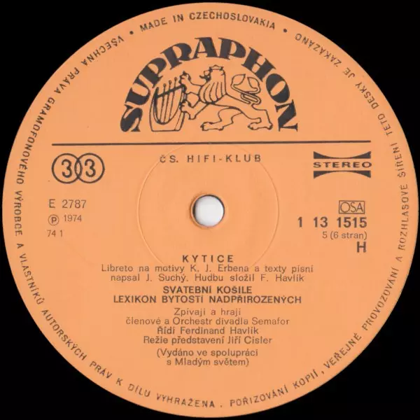 | Uitgever | Supraphon | Čs. Hifi-klub |