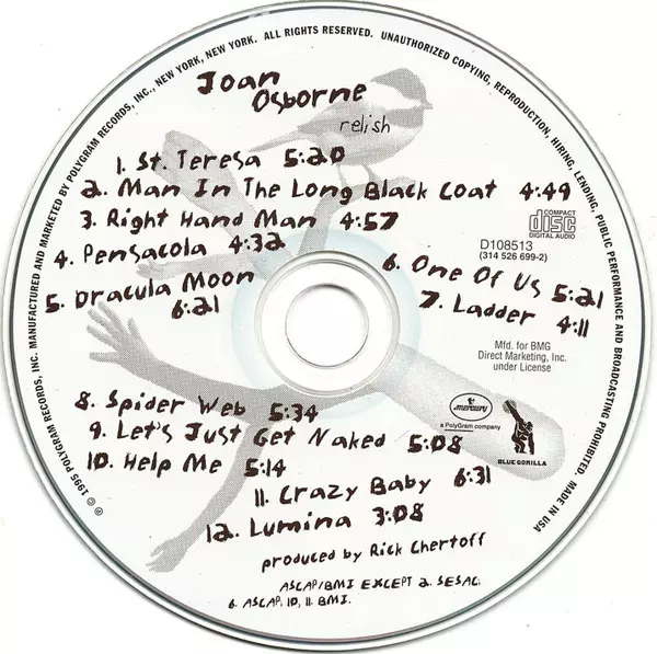 Joan Osborne: Relish versie op CD in standaard editie. Deze specifieke uitgave werd uitgebracht in VS bij uitgeverij Blue Gorilla in samenwerking met Mercury op 20. februari 2026. Album valt binnen het genre Rock, Alternative rock en Blues-Rock.