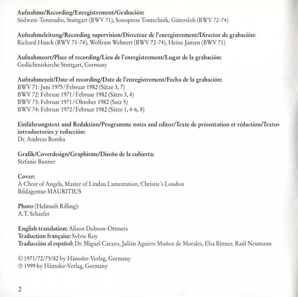 | Titel | Cantatas BWV 71-74 |