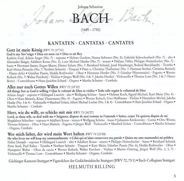 | Artiest | Johann Sebastian Bach | Helmuth Rilling | Bachcollegium Stuttgart |