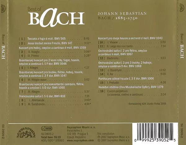 Johann Sebastian Bach: Best Of Bach versie op CD in standaard editie. Deze specifieke uitgave werd uitgebracht in Tsjechië bij uitgeverij Supraphon op 22. november 2017.