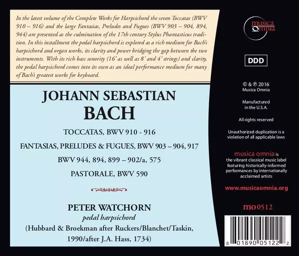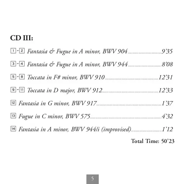 Titel | Toccatas, BWV 910-916, Fantasias, Preludes & Fugues, BWV 903-904, 917, BWV 944, 894, 899-902/a, 575, Pastorale, BWV 590 |