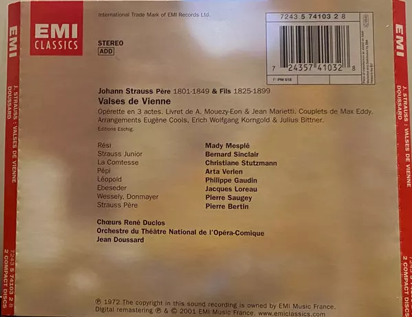 | Artiest | Erich Wolfgang Korngold | Johann Strauss Jr. | Mady Mesplé | Orchestre Du Théâtre National De L'Opéra-Comique | Julius Bittner | Bernard Sinclair | Jean Doussard | Eugène Cools |