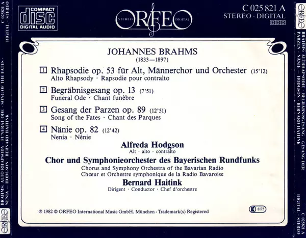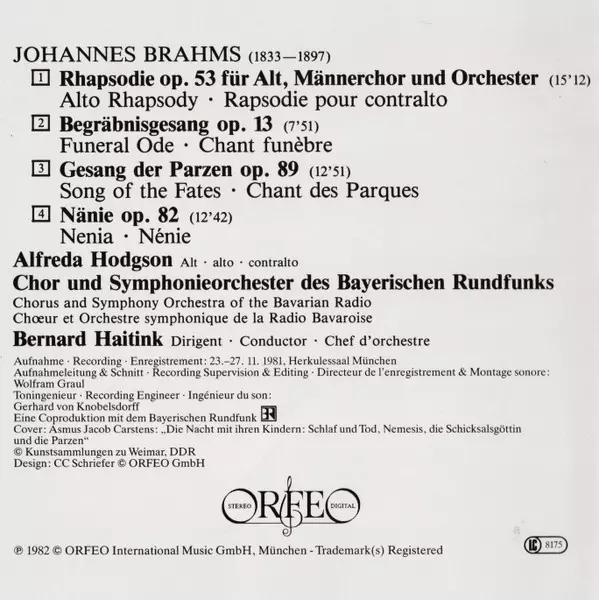 | Artiest | Johannes Brahms | Symphonie-Orchester Des Bayerischen Rundfunks | Bernard Haitink | Chor Des Bayerischen Rundfunks | Alfreda Hodgson |