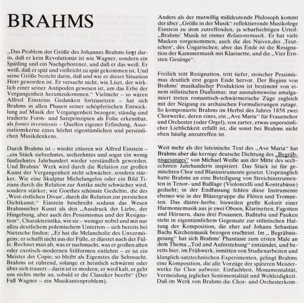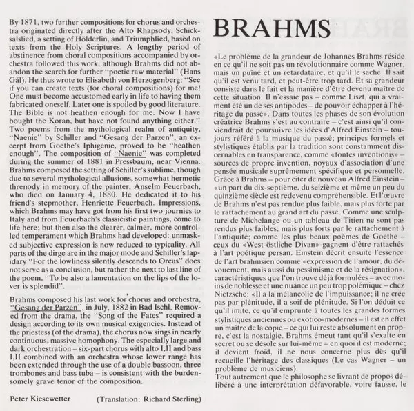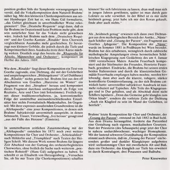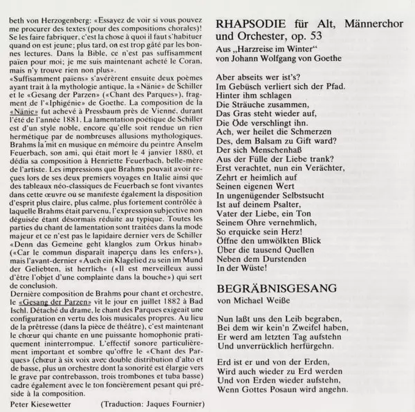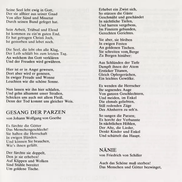 | Titel | Altrhapsodie - Naenie - Gesang Der Parzen - Begräbnisgesang |