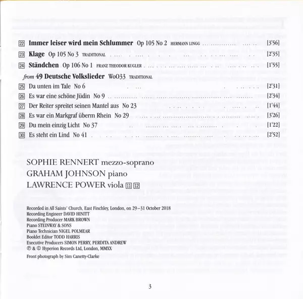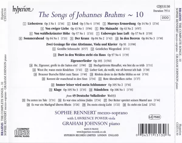 | Artiest | Johannes Brahms | Graham Johnson | Sophie Rennert |