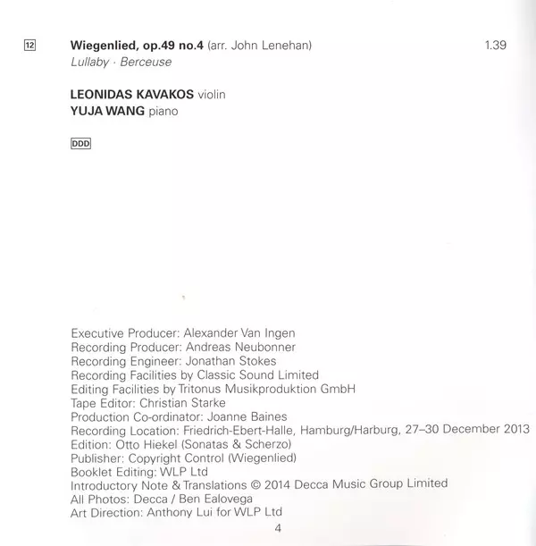 | Artiest | Johannes Brahms | نيسم جلال | Yuja Wang |