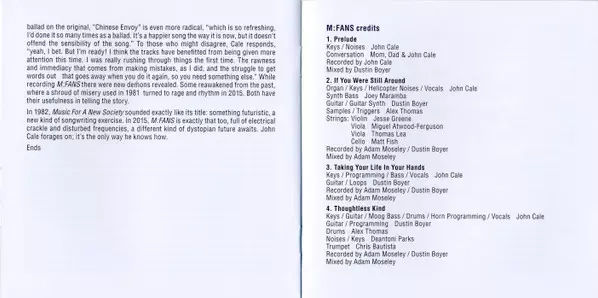 Guitar, Loops, Recorded By Dustin Boyer | Keyboards, Programmed By, Bass, Vocals John Cale | Recorded By, Mixed By Adam Moseley