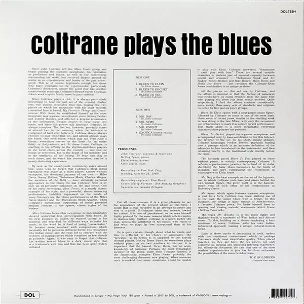 In October 1960, during the productive sessions for his album "My Favorite Things" on the Atlantic label, John Coltrane produced enough material for at least three albums. One of these is 1961's "Coltrane Plays the Blues," on which the jazzman plays soprano saxophone for the first time. Also featured are McCoy Tyner, Steve Davis and Elvin Jones,...
