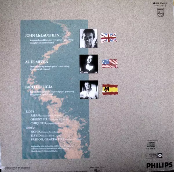 | Artiest | John McLaughlin | Al Di Meola | Paco De Lucía |