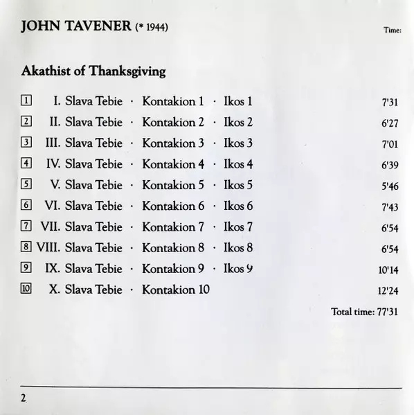 | Akathist Of Thanksgiving | 77:30 min |