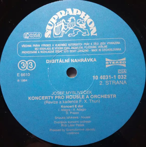 Artiest | Libor Pešek | Josef Mysliveček | Shizuka Ishikawa | Dvořák Chamber Orchestra |