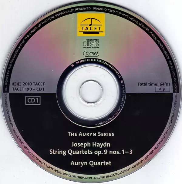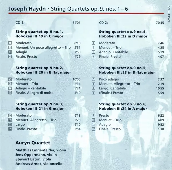 | Titel | Auryn's Haydn: Op. 9 (String Quartets ∙ Vol. 3 Of 14 Op. 9, Nos. 1 – 6) |