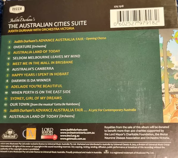 Orchestra Victoria: The Australian Cities Suite versie op CD in standaard editie. Deze specifieke uitgave werd uitgebracht in Australië bij uitgeverij Decca op 1. mei 2012. Album valt binnen het genre Pop en Folk, World, & Country.