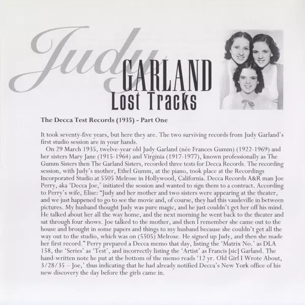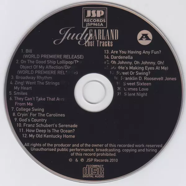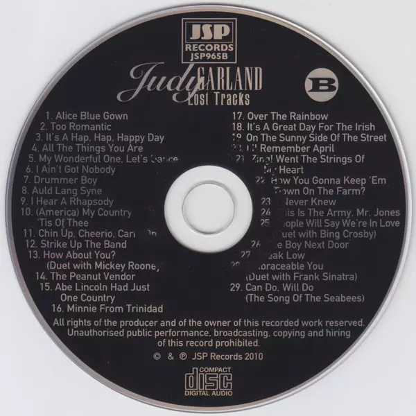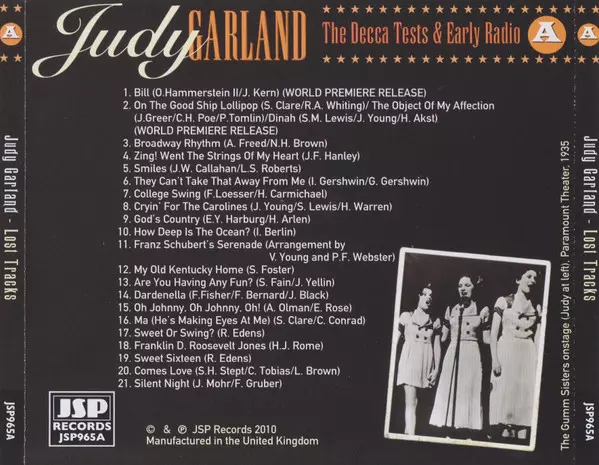 Judy Garland: Lost Tracks 1929 - 1959 versie op 4CD/Doos in remastered editie. Deze specifieke uitgave werd uitgebracht in Verenigd Koninkrijk bij uitgeverij JSP Records op 22. maart 2022. Album valt binnen het genre Stage & Screen, Jazz en Easy listening muziek.