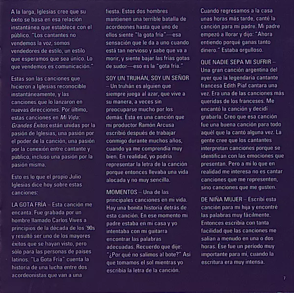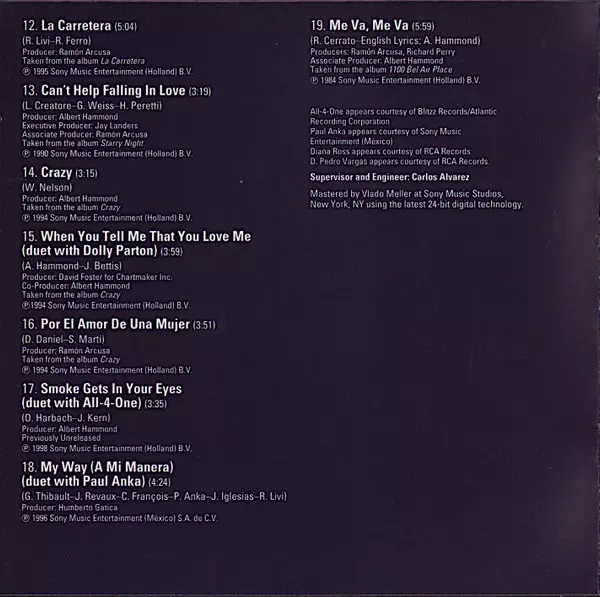 | Meer informatie | Spanish compilation (2015 Spain) — Columbia, Mi Vida: Grandes Éxitos |