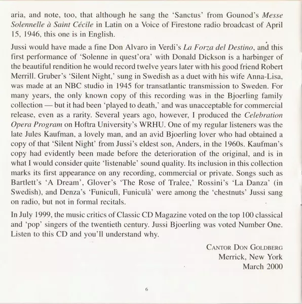 Jussi Björling was a renowned Swedish tenor, considered one of the leading operatic singers of the 20th century. Born on February 5, 1911, in Stora Tuna, Sweden, he was known for his pure and powerful voice as well as his technical skill. Björling made his professional debut in 193...