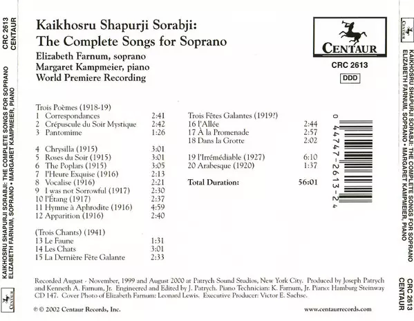 | Artiest | Kaikhosru Shapurji Sorabji | Margaret Kampmeier | Elizabeth Farnum |