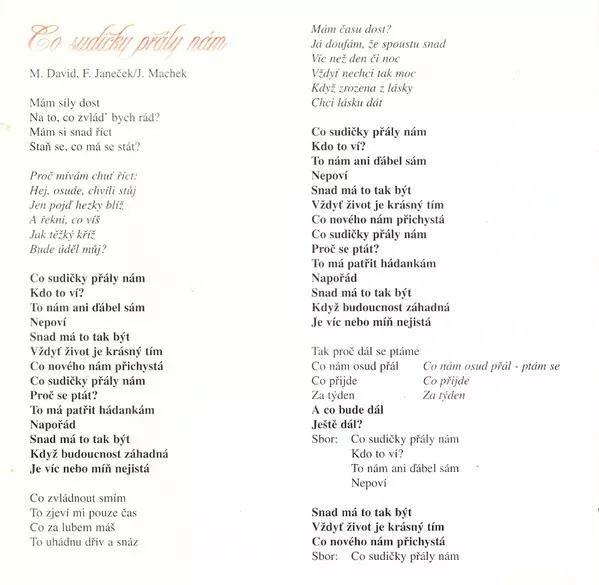 Arranged By Jiří Škorpík | Lyrics By Jaroslav Machek | Music By František Janeček, Michal David