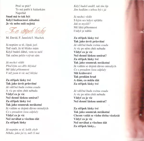 Arranged By Michal David | Arranged By [Smyčce] Ivan Zelenka | Lyrics By Jaroslav Machek | Music By František Janeček, Michal David