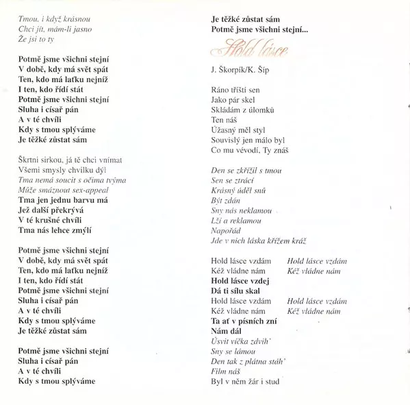 Arranged By Michal David | Arranged By [Smyčce] Ivan Zelenka | Lyrics By Karel Šíp | Music By Jiří Škorpík