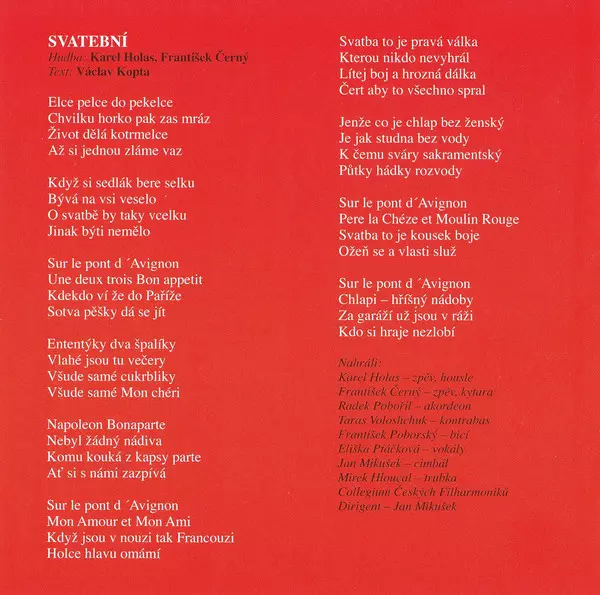 After the hugely successful album "Sváteční" (the best-selling album of 2007 and after only 8 weeks of sales !!) comes one of the most popular local bands of today, celebrating success thanks to its cross-genre spontaneity across the generational spectrum, with a dream project. Music to the successful Czech comedy "Wedding on the battlefield" by...