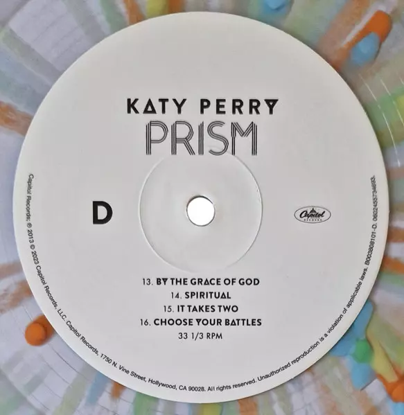 Katy Perry: Prism CLR | DLX | LTD versie op vinyl 2LP in gekleurde deluxe limited editie. Deze specifieke uitgave werd uitgebracht in Wereldwijd bij uitgeverij Capitol Records op 3. november 2023.