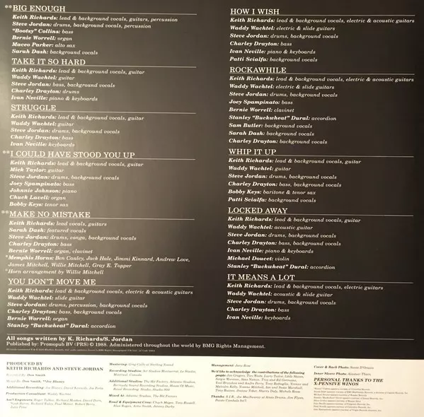 Alto Saxophone Maceo Parker | Backing Vocals Sarah Dash | Backing Vocals, Percussion Keith Richards | Backing Vocals, Percussion, Drums Steve Jordan | Bass Guitar Bootsy Collins | Organ Bernie Worrell