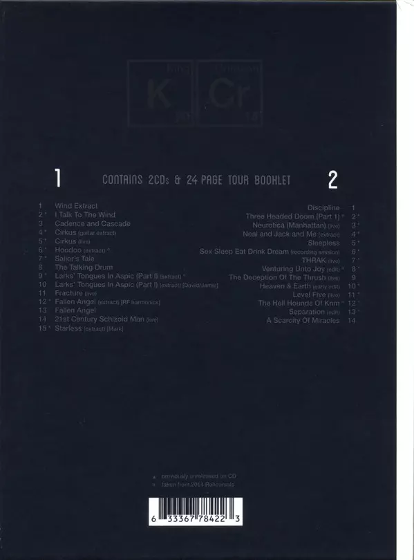 | Bass Tony Levin | Drums Gavin Harrison, Pat Mastelotto, William Rieflin | Guitar Jakko M. Jakszyk, Robert Fripp | Saxophone Mel Collins | Written-By Bill Bruford, David Cross, Jamie Muir, John Wetton, Robert Fripp | |||