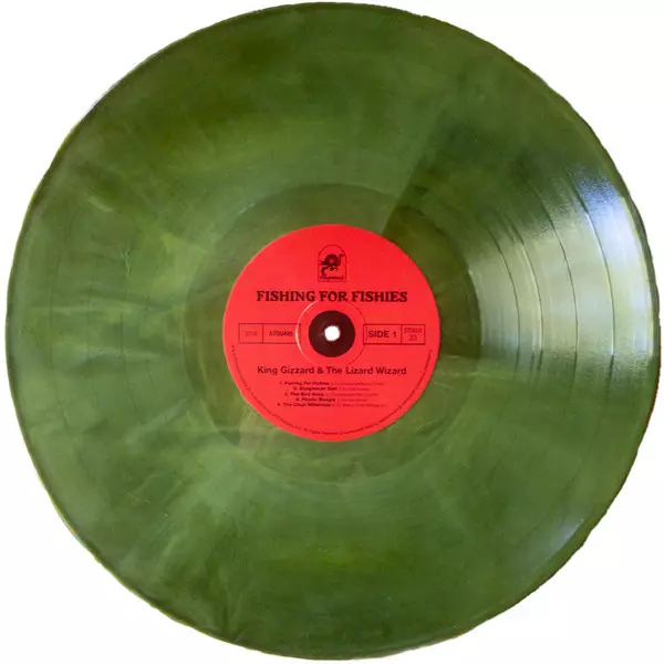 King Gizzard And The Lizard Wizard: Fishing For Fishies CLR versie op vinyl LP in gekleurde editie. Deze specifieke uitgave werd uitgebracht in VS bij uitgeverij Flightless op 6. januari 2022.