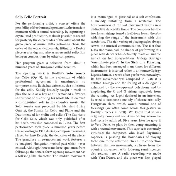 | Titel | Solo Cello Portrait |