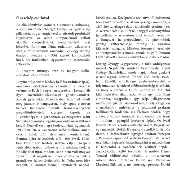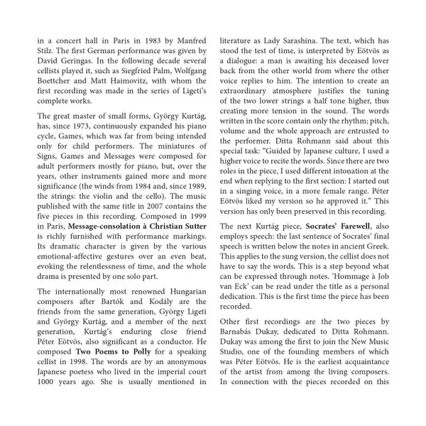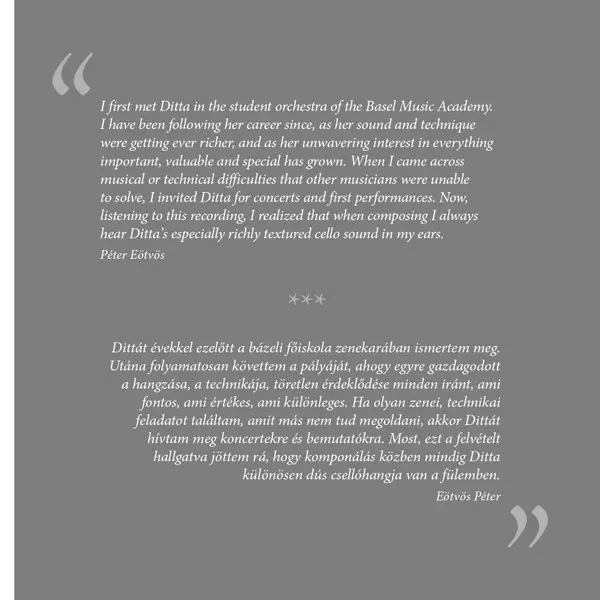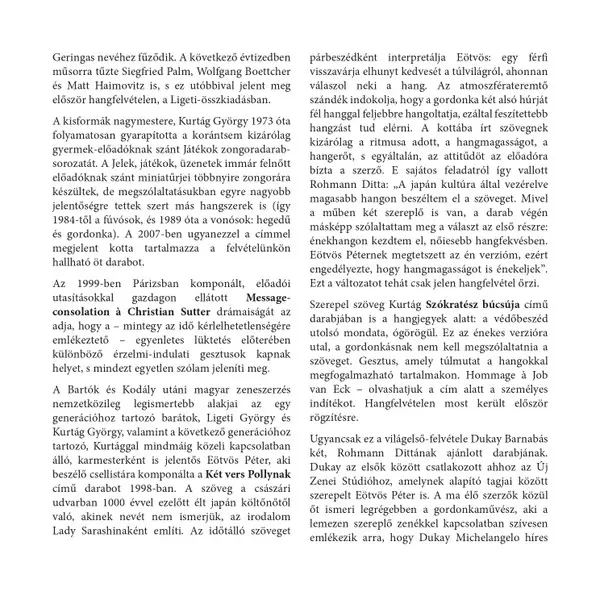 | Artiest | György Ligeti | György Kurtág | Zoltán Kodály | Peter Eötvös | Ditta Rohmann | Barnabás Dukay |