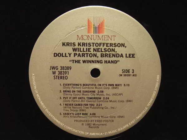 Willie Nelson: The Winning Hand versie op vinyl 2LP in standaard editie. Deze specifieke uitgave werd uitgebracht in VS bij uitgeverij Monument in het jaar 1982. Album valt binnen het genre Folk, World, & Country en Country.