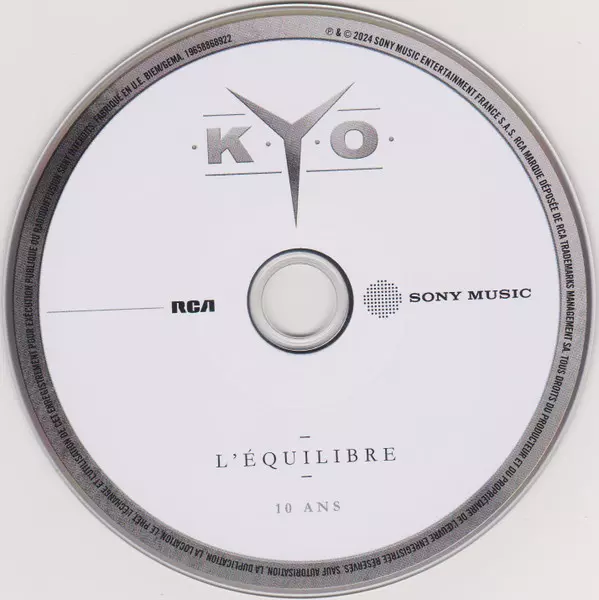 Kyo: L'Équilibre - 10 Ans DLX versie op CD in deluxe editie. Deze specifieke uitgave werd uitgebracht in Frankrijk bij uitgeverij RCA in samenwerking met Sony Music op 7. juni 2024. Album valt binnen het genre Rock en Pop.