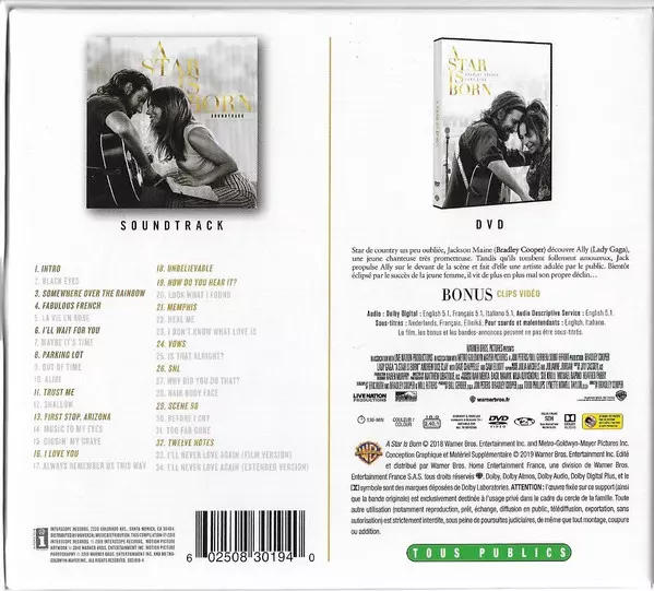 | CD-19 | Lady Gaga, Bradley Cooper: How Do You Hear It? (Dialogue) | 0:14 min | |