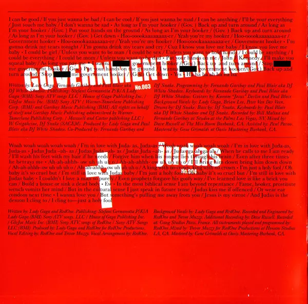 Keyboards, Instruments, Arranged By Fernando Garibay, Lady Gaga | Mastered By Gene Grimaldi | Mixed By [Assistant] Al Carlson, Kenta Yonesaka, Kevin Porter (3) | Producer Fernando Garibay, Jeppe Laursen, Lady Gaga, Paul Blair | Programmed By Fernando Garibay, Paul Blair | Recorded By [Assistant] Pete Hutchings | Recorded By, Mixed By Dave Russell | Written-By Jeppe Laursen, Lady Gaga