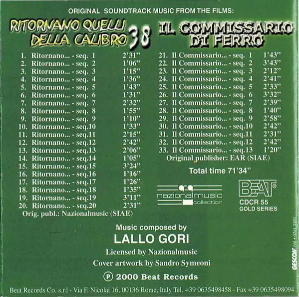 | Titel | Ritornano Quelli Della Calibro 38 / Il Commissario Di Ferro (Original Soundtrack Music From The Films) |