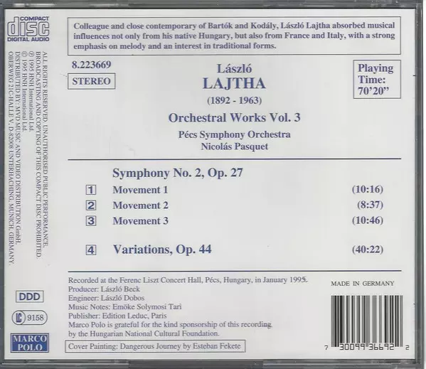 | Artiest | Nicolás Pasquet | László Lajtha | Pécs Symphony Orchestra |