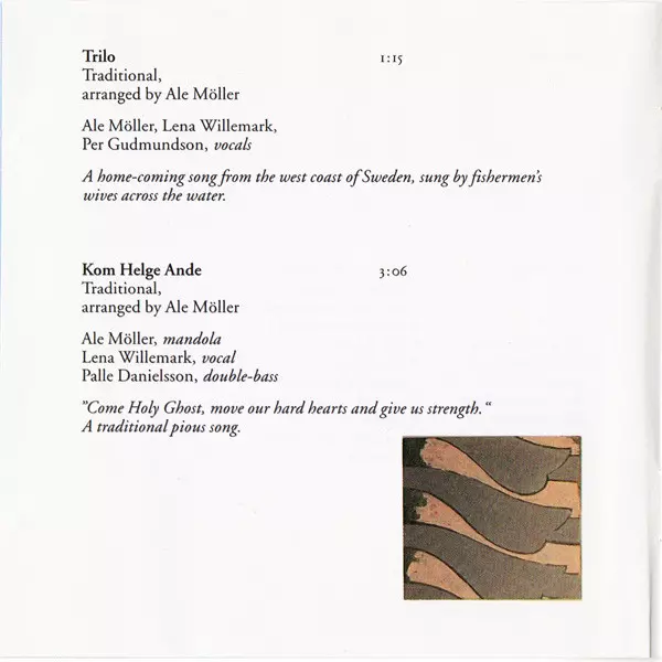 Arranged By Ale Möller | Composed By Ale Möller, Traditional | Double Bass Palle Danielsson | Fiddle [Drone-Fiddle] Mats Edén | Mandola, Flute Ale Möller | Vocals Lena Willemark
