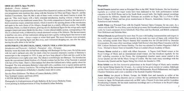 | Cello [Tagore String Trio] James Halsey (2) | Ensemble [String Trio] Tagore String Trio | Flute Judith Fitton | Oboe Sarah Francis | Viola [Tagore String Trio] Brian Schiele | Violin [Tagore String Trio] Frances Mason | ||