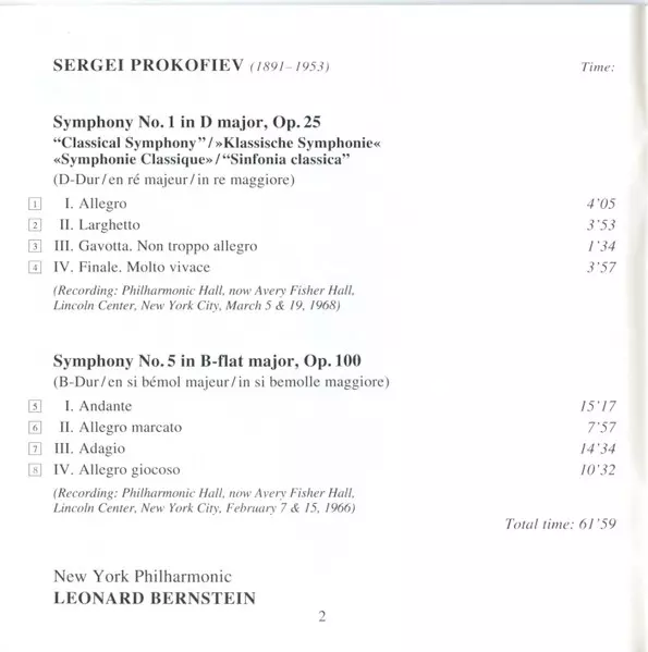 | Artiest | Leonard Bernstein | Sergei Prokofiev | New York Philharmonic |