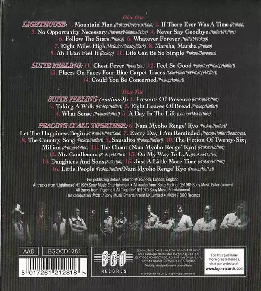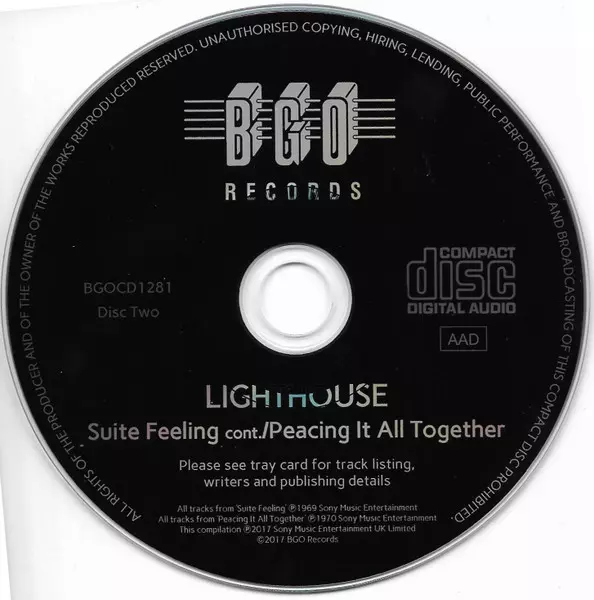 Lighthouse: Lighthouse - Suite Feeling - Peacing It All Together versie op 2CD in remastered editie. Deze specifieke uitgave werd uitgebracht in Europa bij uitgeverij BGO Records op 12. mei 2017. Album valt binnen het genre Rock, Jazz, Jazz-Rock en Psychedelic rock.