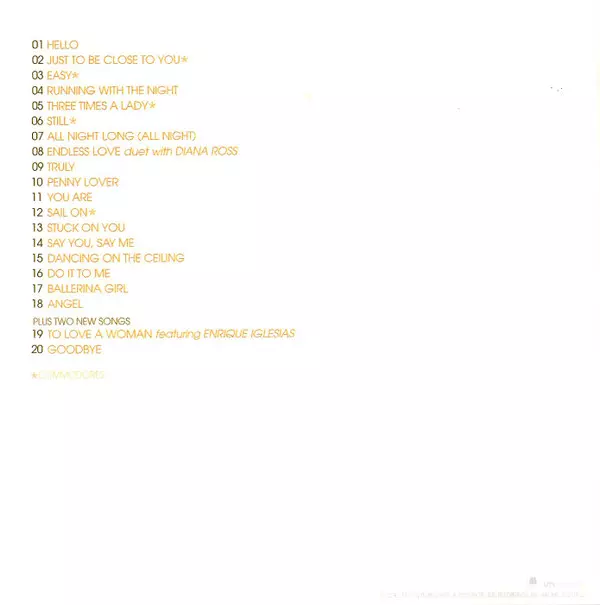 | 20 | Lionel Richie: Goodbye | 3:36 min |