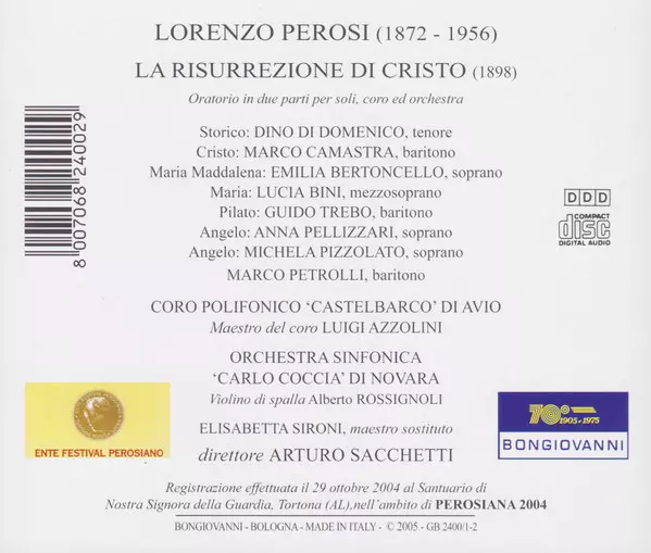 | Artiest | Arturo Sacchetti | Lorenzo Perosi | Orchestra Sinfonica Carlo Coccia | Coro Polifonico Castelbarco of Avio |
