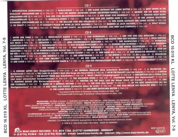 | CD9-4 | Lotte Lenya: The Care Of A Family Man (Die Sorge Des Hausvaters) | 3:46 min | |