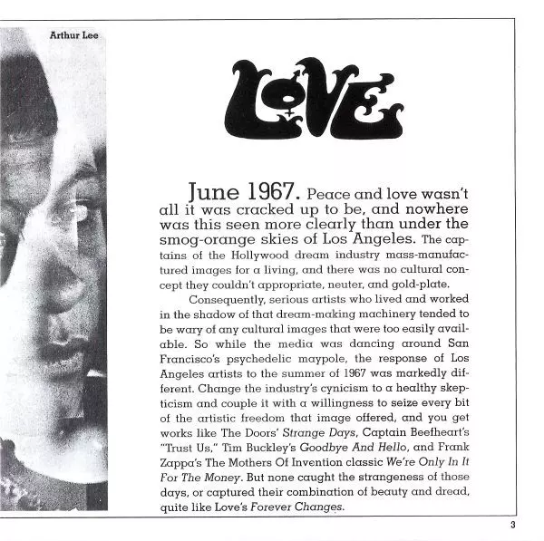 Love "Forever Changes" from 1967 is a psychedelic masterpiece. The album is full of beautiful and haunting melodies and the lyrics are dark and poetic. The album is a must listen for any fan of psychedelic rock.