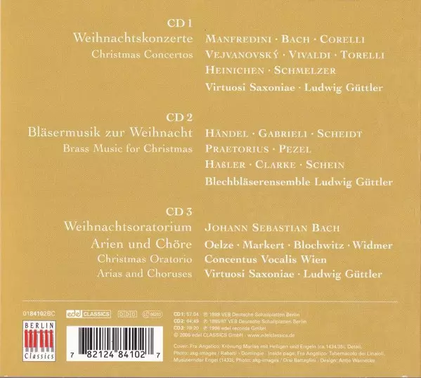 Ludwig Güttler: Barocke Weihnacht versie op 3CD in standaard editie. Deze specifieke uitgave werd uitgebracht in Duitsland bij uitgeverij Berlin Classics in samenwerking met Edel Classics op 11. maart 2015. Album kan worden geclassificeerd als genre Klassieke muziek.
