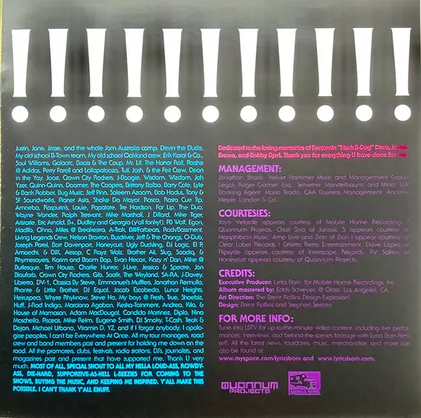 Backing Vocals DJ D-Sharp | Drums Max MacVeety | Scratches Lyrics Born
