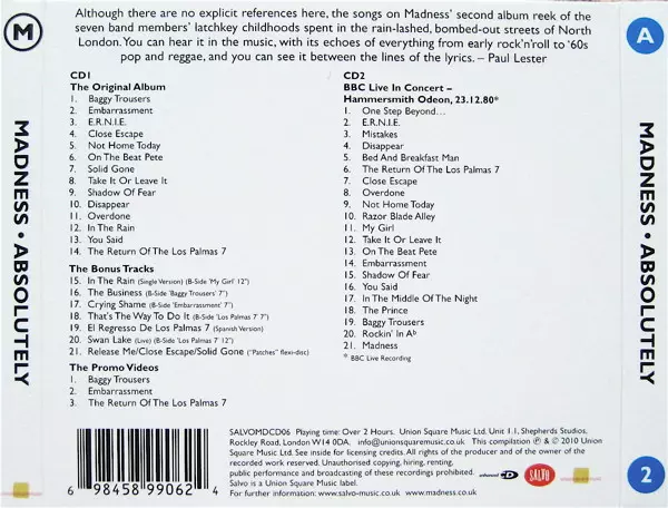 Madness: Absolutely versie op 2CD in remastered editie. Deze specifieke uitgave werd uitgebracht in Verenigd Koninkrijk bij uitgeverij Salvo in samenwerking met Union Square Music op 23. juli 2021.